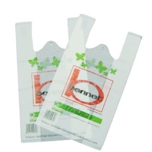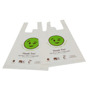 Our Range of corn starch made custom printed biodegradable vest plastic carrier bag wholesale with logo are the perfect altanative to traditional plastic bags, which made from corn starch and break down within 90 days in an idea compost Environment.