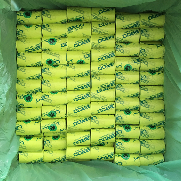 All of our eco friendly custom printed cornstarch 100% biodegradable compostable pet dog poop waste bags on roll