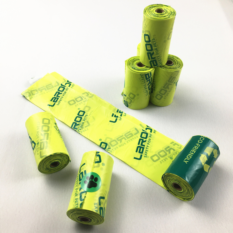 Our Range of eco friendly custom printed cornstarch 100% biodegradable compostable pet dog poop waste bags on roll are the perfect altanative to traditional plastic bags, which made from corn starch and break down within 45 days in an idea compost Environment.